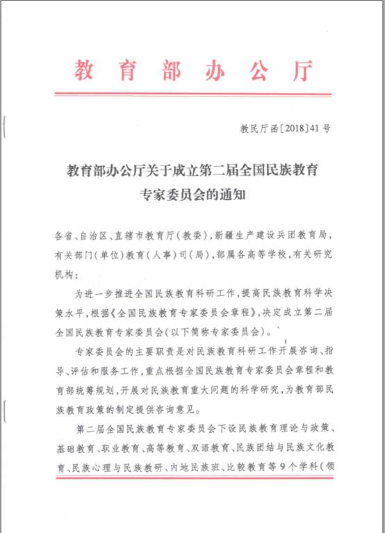 近日,教育部办公厅印发了“关于成立第二届全国民族教育专家委员会的通知”。公司吴瑞林副教授因其在少数民族双语教育和中华民族认同研究方面所做工作,被遴选为专家委员会民族心理与民族教研学科组专家。