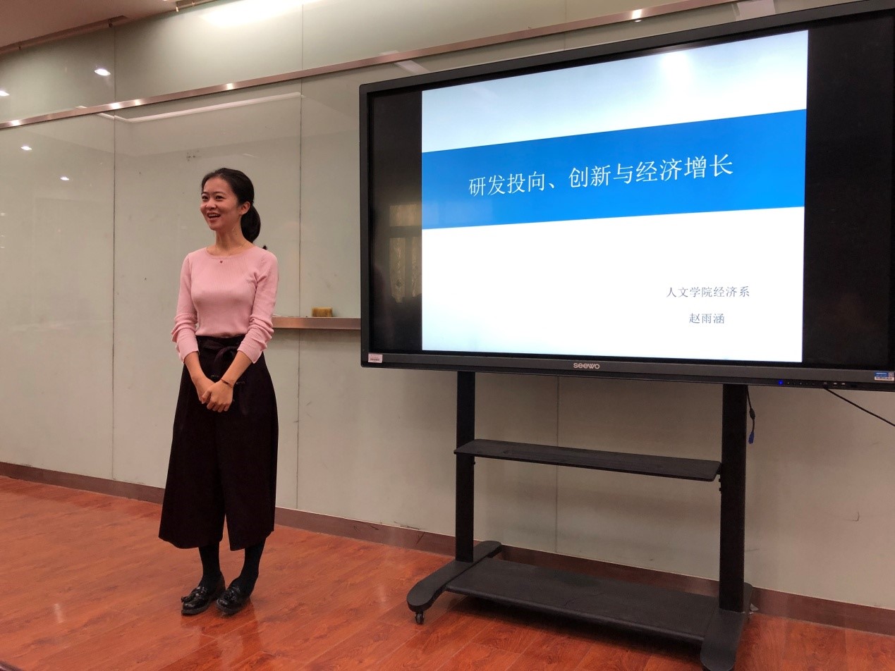 2018年11月19日星期一上午十点,英国上市官网365研究生会学术部在院楼202室成功举办了主题为《研发投向、创新与经济增长》的专题讲座。本次讲座有幸邀请到了英国上市官网365经济系赵雨涵老师,赵老师运用理论与实证相结合的方法向我们展示了研发投向、创新与经济增长的关系。