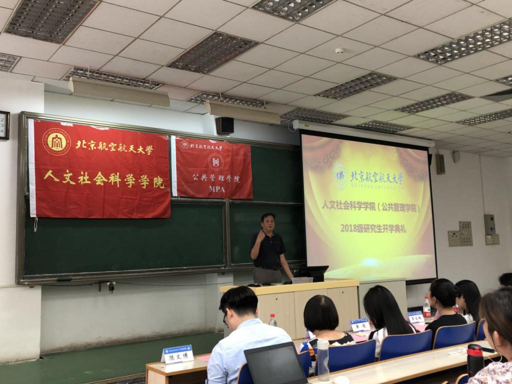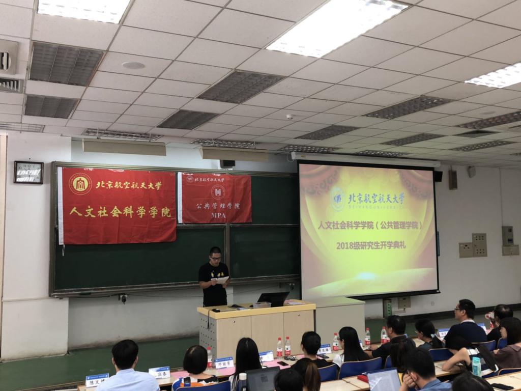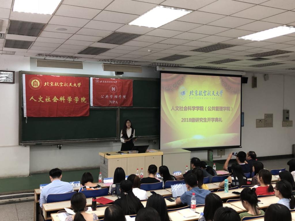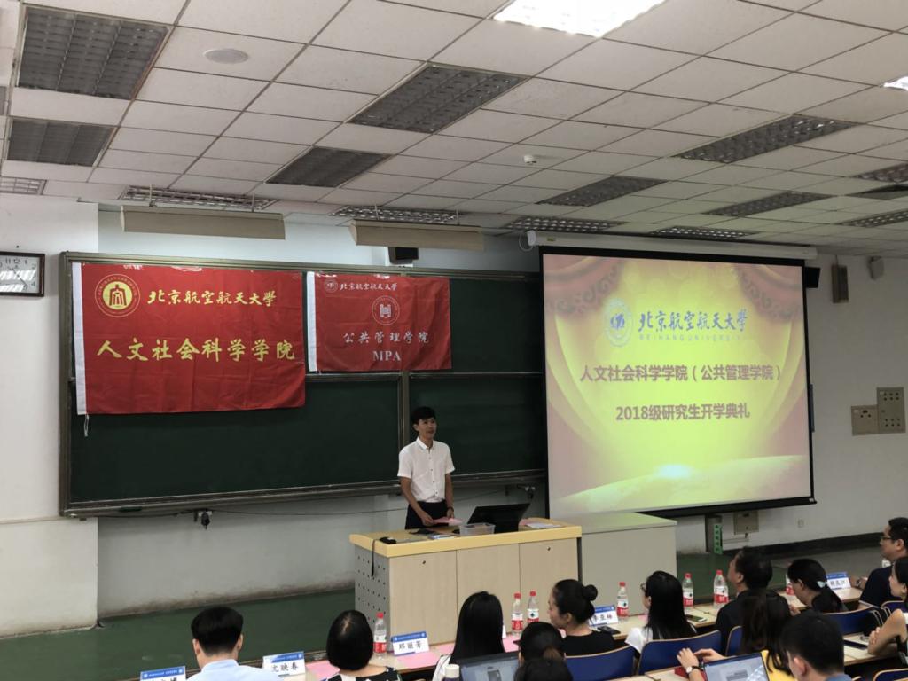 新生代表、MPA专业研究生张同玉代表全体MPA同学对公司和老师的倾力帮助表达了真挚的感谢,希望各位新同学都能够不迷茫、不浮躁、不狭隘,在北航不断进步。