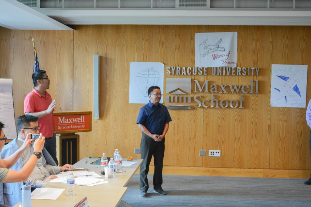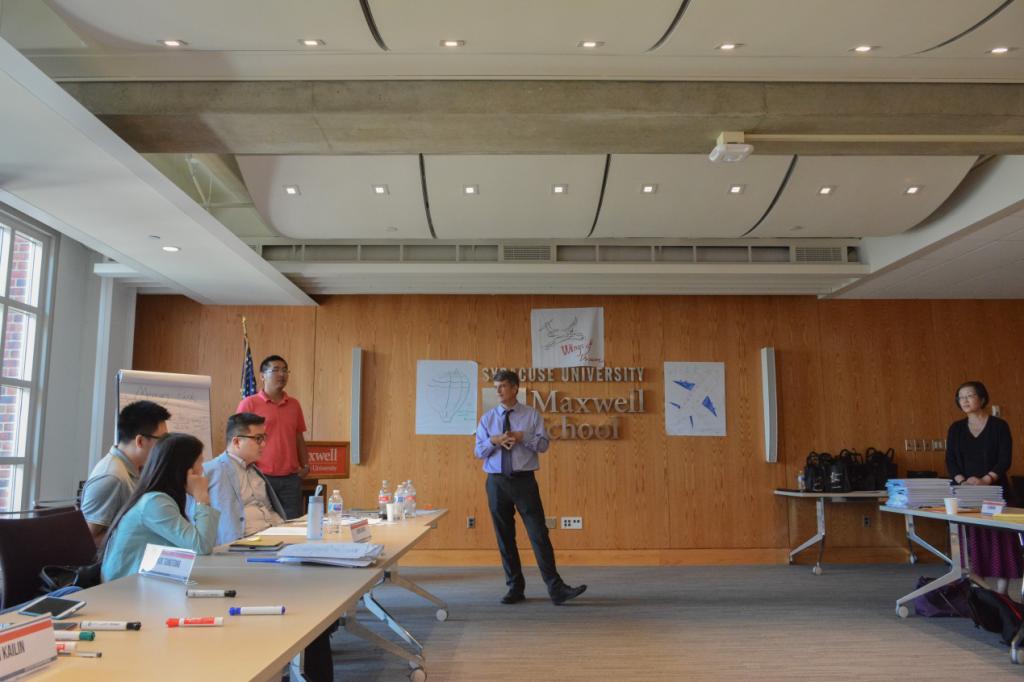 冲突与协作项目主任、高级公共管理教育副主任杰勒德老师要求大家在结业之前,把最想要留在锡拉丘兹大学的东西画下来。同学们集思广益、发挥想象力,经过热烈的讨论,将想法画在了纸上并进行展示,为雪城大学和麦克斯威尔公司送上有象征意义的“创意礼物”。