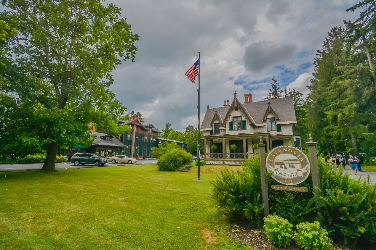下午,我们前往卡泽诺维亚小镇进行实地考察,在我们就餐的小旅馆窗外,奥侬达嘎湖与蓝天白云交相辉映,帆船在粼粼的波光中时隐时现。在静谧的风景环绕中,马克斯韦尔公司公民权与民主普查家族讲席教授、政治学系荣休教授安德森博士为我们上了一堂生动有趣的课程《公开而高效的地方政府》。