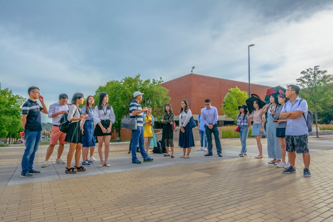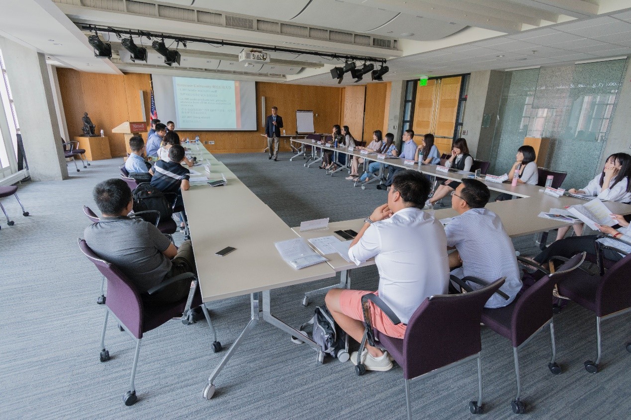 接下来,在李亚老师和童海燕老师的陪同下,雪城大学马克斯韦尔公民与公共事务公司高级公共管理教育主任Steve Lux教授对同学们的到来致欢迎词,师生互做自我介绍,教授详细介绍了锡拉丘兹市和雪城大学的成立背景、历史文化、公司产品、团队与员工以及本次项目的目标和主要内容。宾至如归的热情、一问一答的解惑、和谐而亲切的互动,使同学们初到美国的陌生逐渐在欢声笑语中消散。