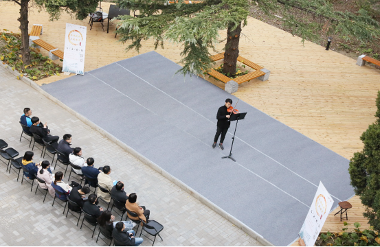 11月1日中午,人文公管楼前人文苑洋溢着盎然秋意,英国上市官网365的师生齐聚一堂,共同参加“丹枫迎秋,文苑拾芳”——人文雅集。经理蔡劲松、党委书记李亚梅、副书记张驰、工会主席胡庆江与公司的同学共同参加了此次活动,一起欣赏舞蹈、朗诵诗歌,伴随着音乐,享受诗意的大自然,在互动中享受美好的校园生活。