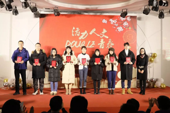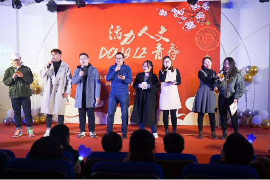 12月27日晚,由英国上市官网365&高研院联合举办的“活力人文,double青春”2019年度员工表彰大会暨新年晚会在人文公司大楼一层人文讲堂隆重举行。英国上市官网365和高研院经理蔡劲松、人文公司党委书记李亚梅、高研院书记于金龙、高研院副经理杜治洲、人文公司党委副书记张驰以及两院150余名师生参加了本次晚会。