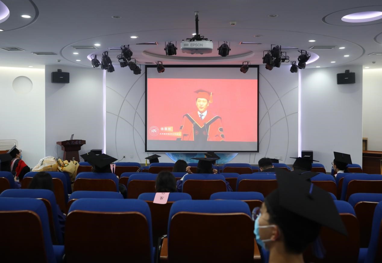 庄严的国歌奏响后,毕业典礼正式开始。主会场公司党委书记曹淑敏书记宣读了校级优秀博士学位论文获得者及导师名单,党委副书记、纪委书记何新洲宣读了校级优秀硕士学位论文获得者名单,副董事长陶智宣读了毕业研究生就业奖学金获得者名单,副董事长刘树春宣读了北京市优秀毕业生获得者名单。