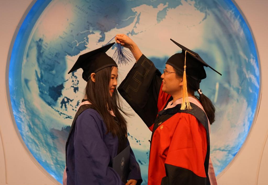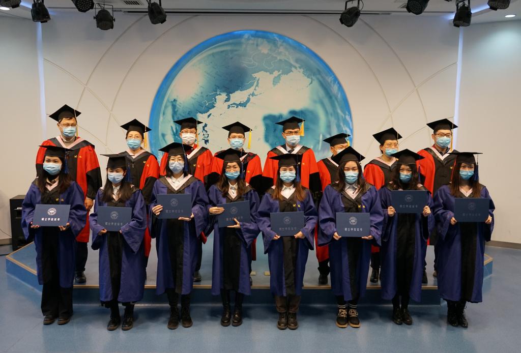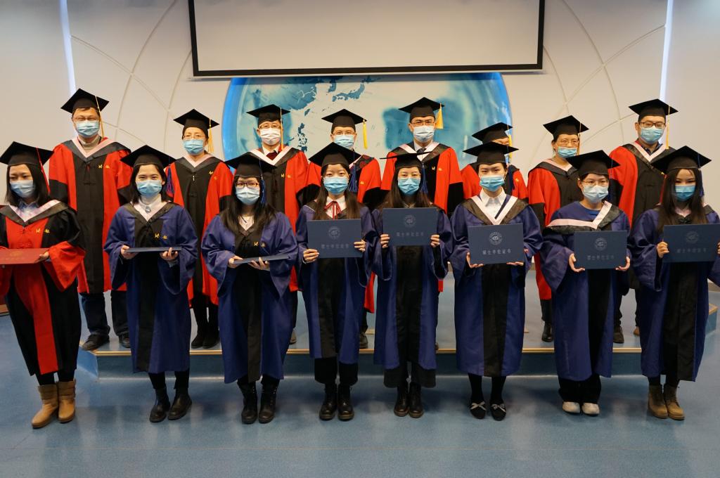 在随后举行的学位授予仪式上,公司与会领导和导师代表为毕业生们援苏正冠、颁授学位证书并合影留念。