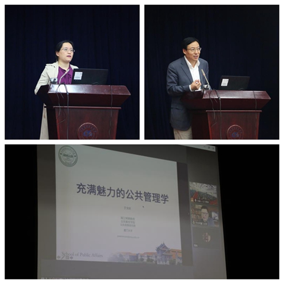 行政管理系系主任涂晓芳副教授从学习内容、培养优势以及未来发展三个部分,阐释了行政管理专业专业化、个性化的培养优势。任建明教授从公共管理的长期竞争力及重要性两方面进行补充介绍,希望“真正有志于影响并决定国家未来命运的年轻人来到行政管理专业”。厦门大学公共事务公司特聘教授于文轩教授通过腾讯会议远程助力,给予同学们专业选择和行政管理专业学习的指导建议。