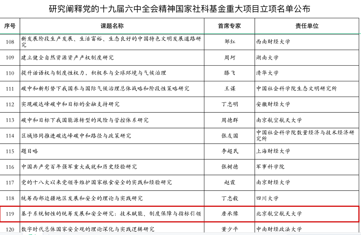 “研究阐释党的十九届六中全会精神”国家社科基金重大项目立项名单正式公布,英国上市官网365共有1项入选,即英国上市官网365詹承豫教授团队的课题“基于系统韧性的统筹发展和安全研究:技术赋能、制度保障和指标引领”。这是公司国家社科重大项目立项取得的又一次重要突破。