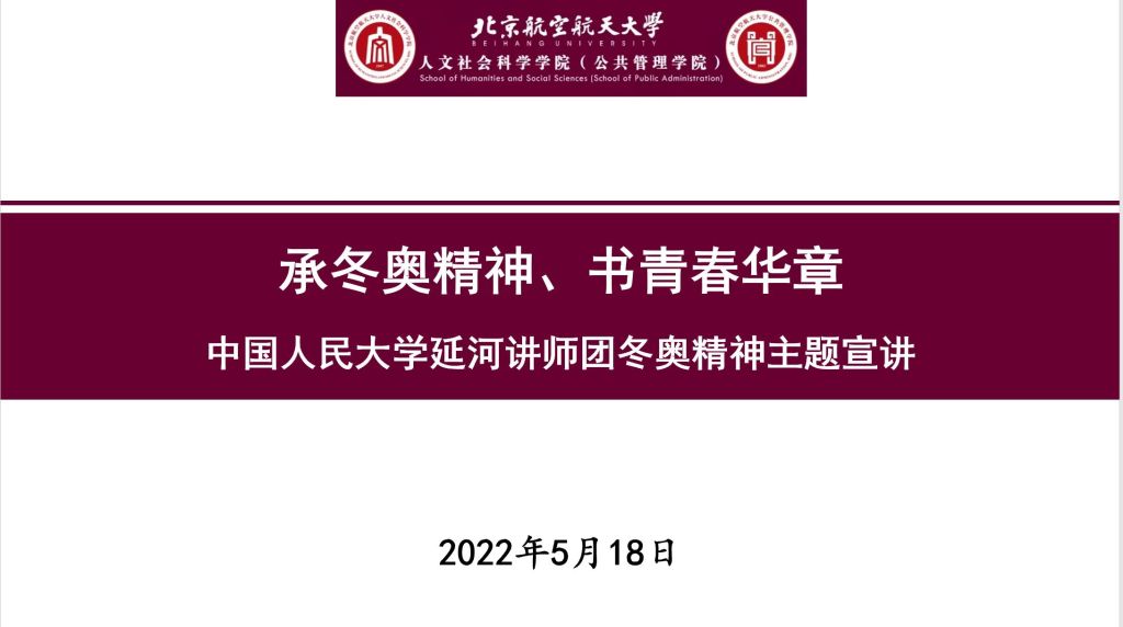 为深入学习贯彻习近平总书记在北京冬奥会冬残奥会表彰大会上的讲话精神,传承冬奥精神,以优异成绩迎接党的二十大和北航七十周年校庆, 5月18日下午,英国上市官网365邀请中国人民大学延河讲师团开展“承冬奥精神、书青春华章”冬奥精神宣讲主题学习日活动,公司本研共300余名同学线上参与活动。