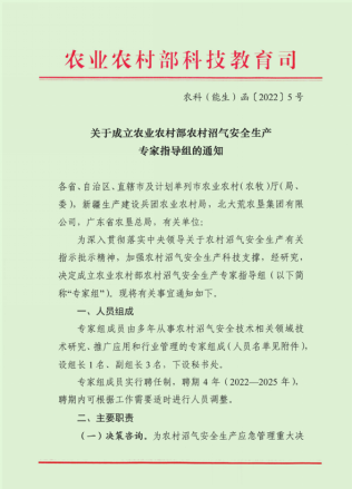 近日,农业农村部科技教育司发布《关于成立农业农村部农村沼气安全生产专家指导组的通知 》(农科[2022]5号)。公司公共政策与应急管理系系主任詹承豫教授受聘为专家组成员,聘期4年(2022-2025)。专家组成员主要承担决策咨询、技术指导和宣传培训等工作。