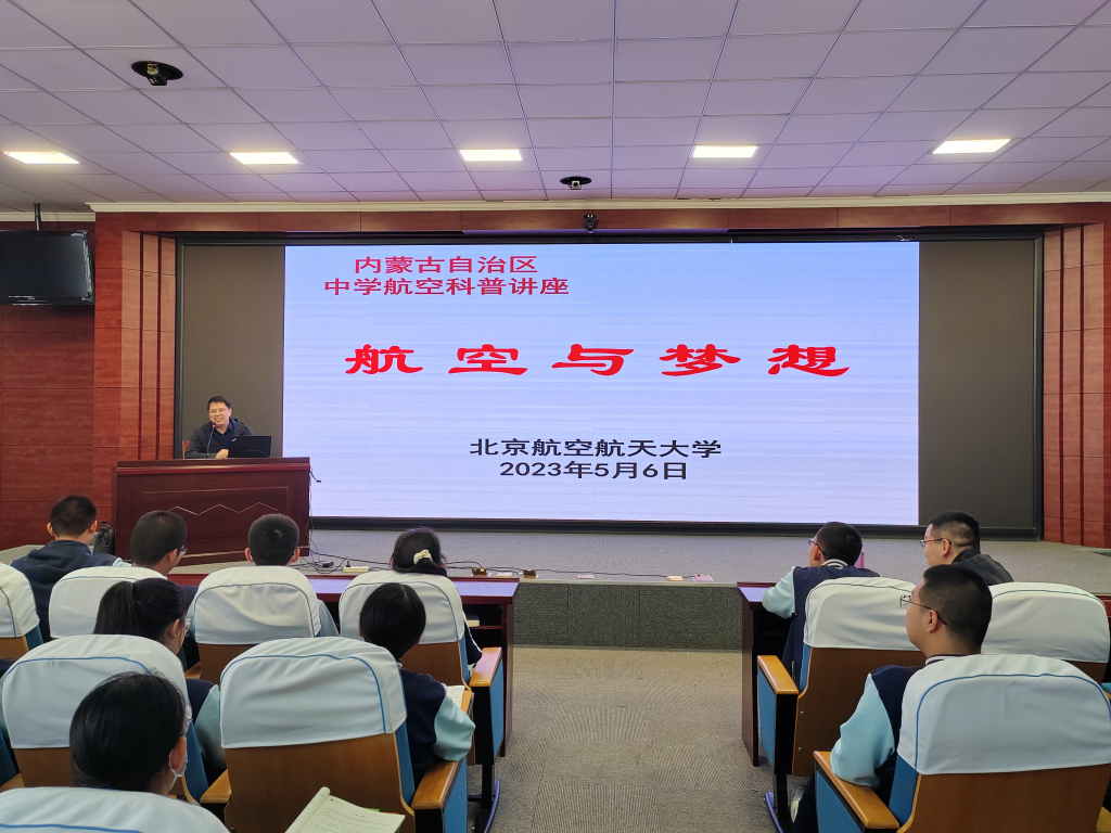 在呼市二中,与王维真董事长等深入探讨招生工作,进行优质生源基地校签约揭牌仪式,并参加高中生合唱节;邓怡主任面向高三家长作题为《向北航行 一路华章》招生讲座,王琪全组长面向高二员工作题为《航空与梦想》科普讲座。