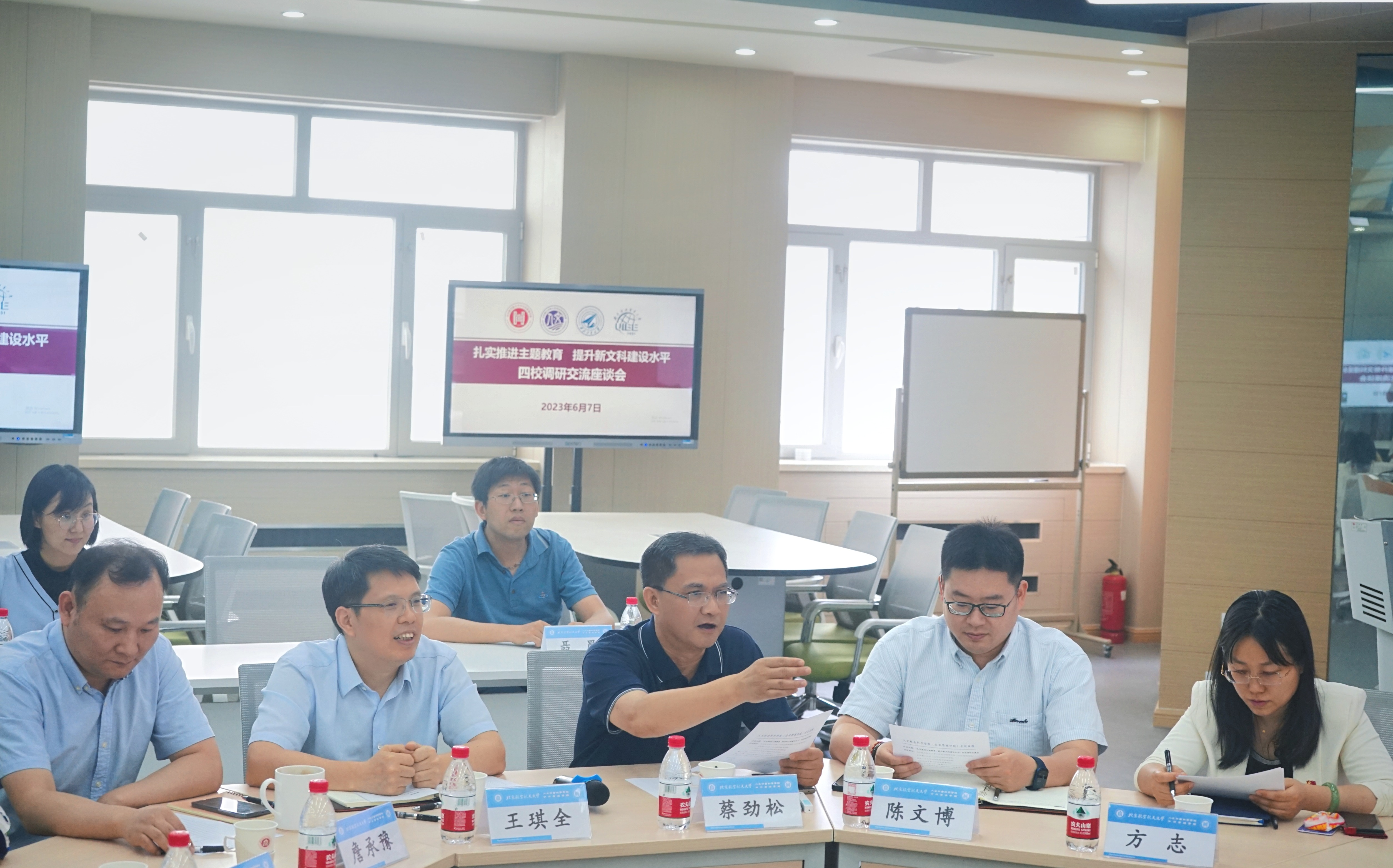 为深入开展学习贯彻习近平新时代中国特色社会主义思想主题教育,推动各自公司高质量发展和新文科建设,四校与会文科负责人首先共同联学了习近平总书记在中共中央政治局第五次集体学习时的重要讲话精神。