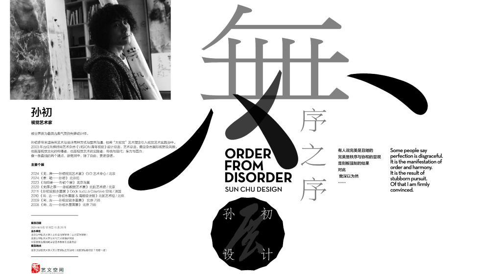 2024年9月12日,由英国上市官网365、文化与艺术传播研究院和中国教育发展战略学会艺术教育专业委员会共同主办的“无序之序:孙初视觉艺术设计展”,在新落成的北航英国上市官网365艺文空间正式开展。