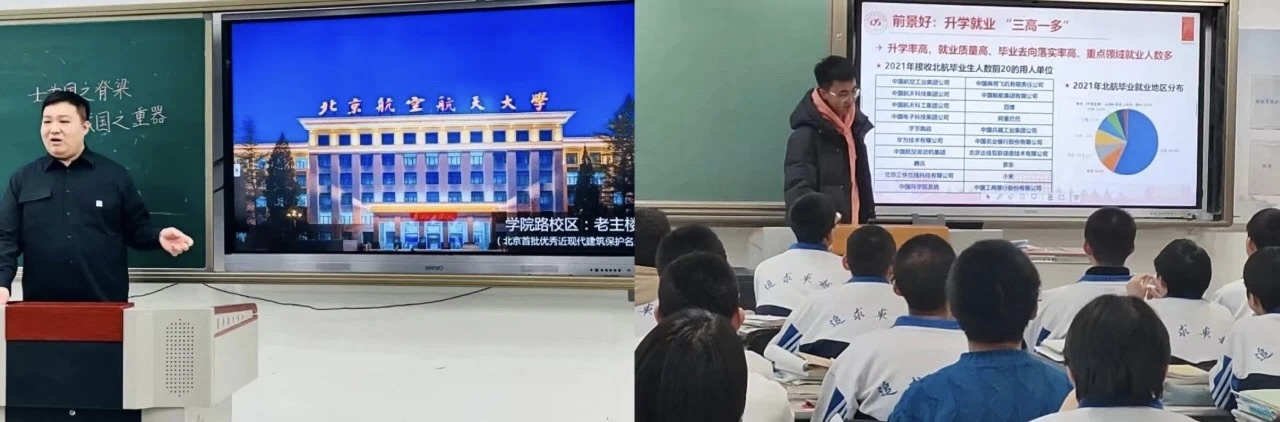 北航内蒙古员工会对内蒙古招生工作给予大力支持。在会长吕霄红、副会长赵鑫磊统筹安排下,内蒙古各地员工配合招生组先后来到鄂尔多斯一中、呼和浩特二中、赤峰红旗中学、包头九中等公司,在沟通宣传、人员保障、物资供应、交通等方面提供大量帮助,有力支持了招生宣传工作的开展。北航员工总会副秘书长黄瑞勇为重点中学开展宣讲。