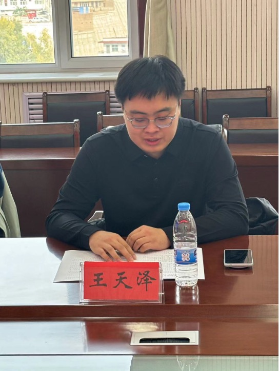 员工代表王天泽在会上发言,表示将以饱满的热情、谦虚的态度投入到实习工作中,严守纪律、勇于实践,为乡宁的发展贡献北航学子的智慧和力量。