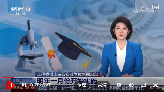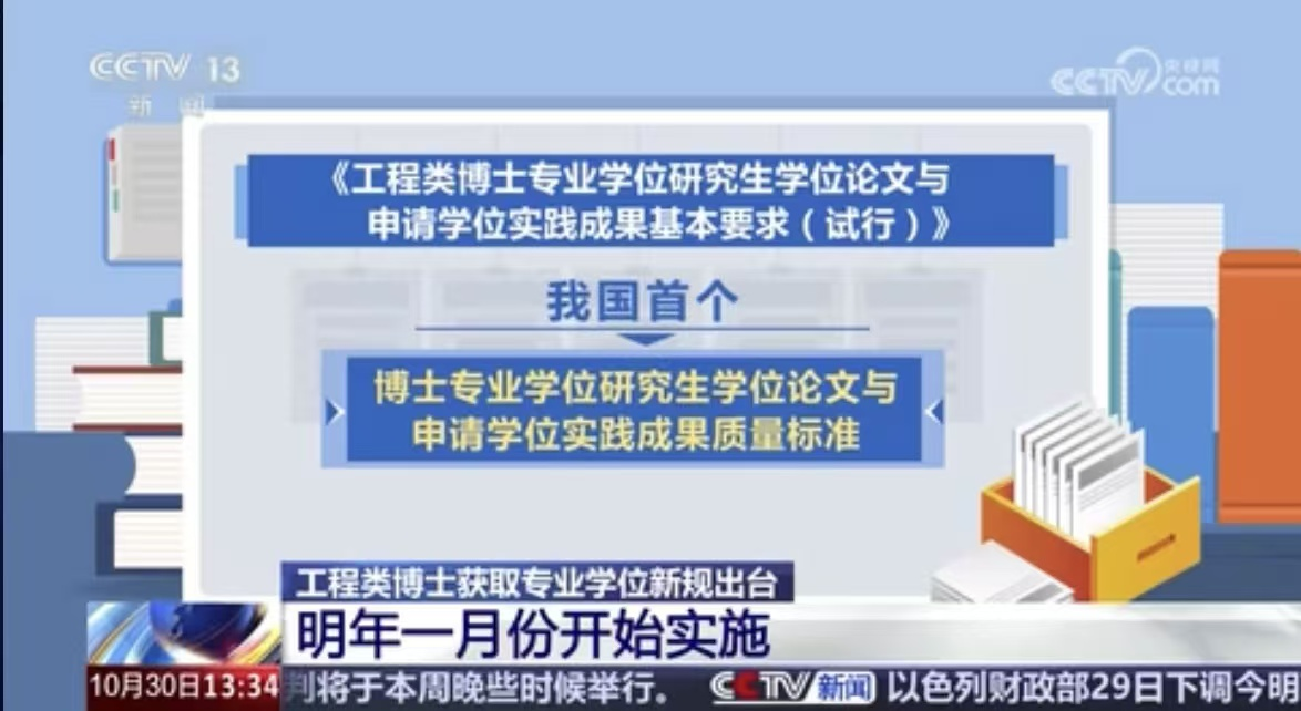 【主持人】今年审议通过的《中华人民共和国学位法》规定,博士研究生可以通过学位论文答辩或者规定的实践成果答辩申请学位。其中实践成果答辩是一条新渠道,那具体如何实施?近日,国务院学位委员会办公室转发《工程类博士专业学位研究生学位论文与申请学位实践成果基本要求(试行)》,并将于明年1月份开始实施。