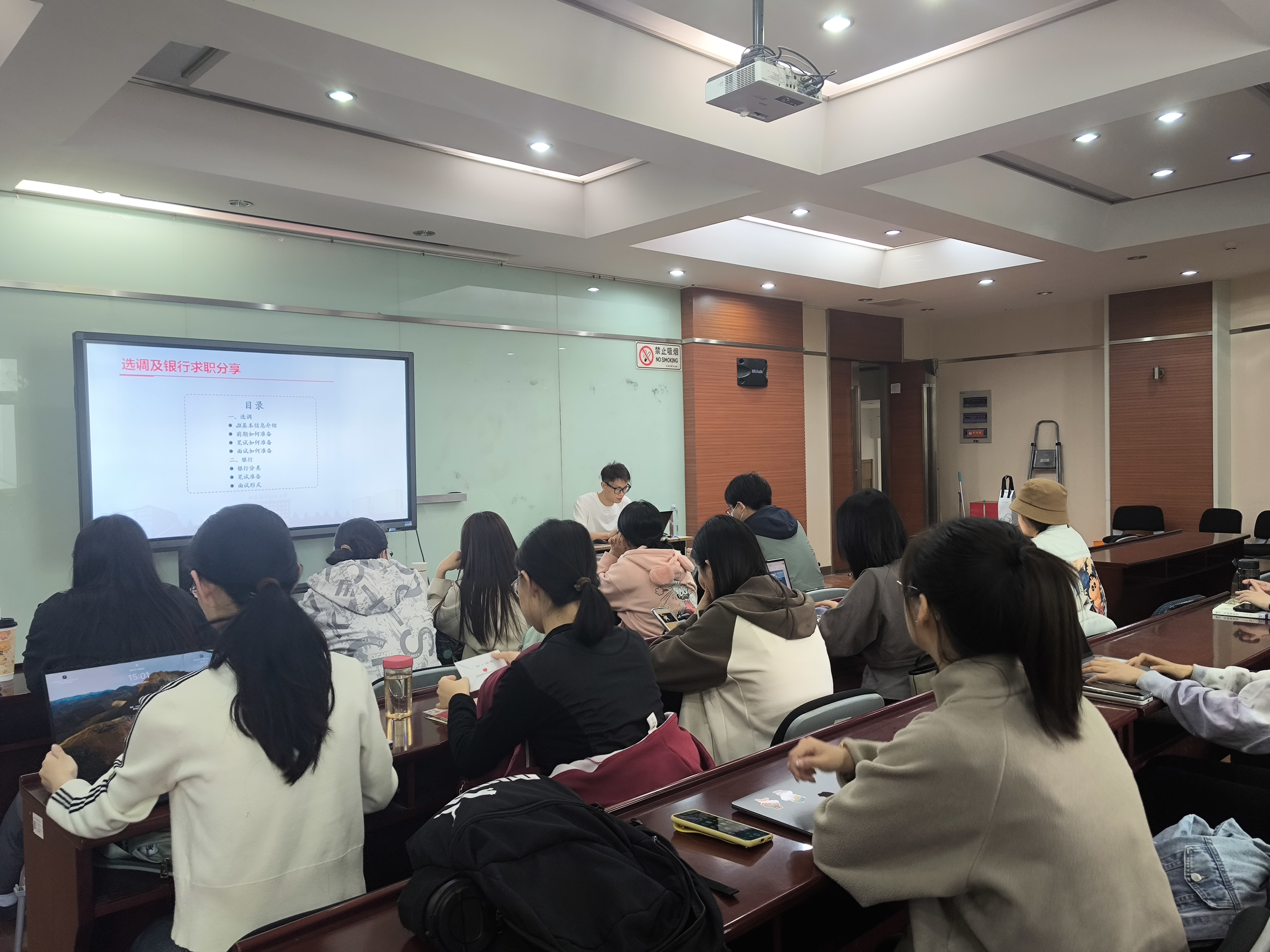 在答疑交流环节,同学们积极提问,郭林学长结合自己的求职经历,耐心解答了同学们关于选调和银行求职的各类问题。