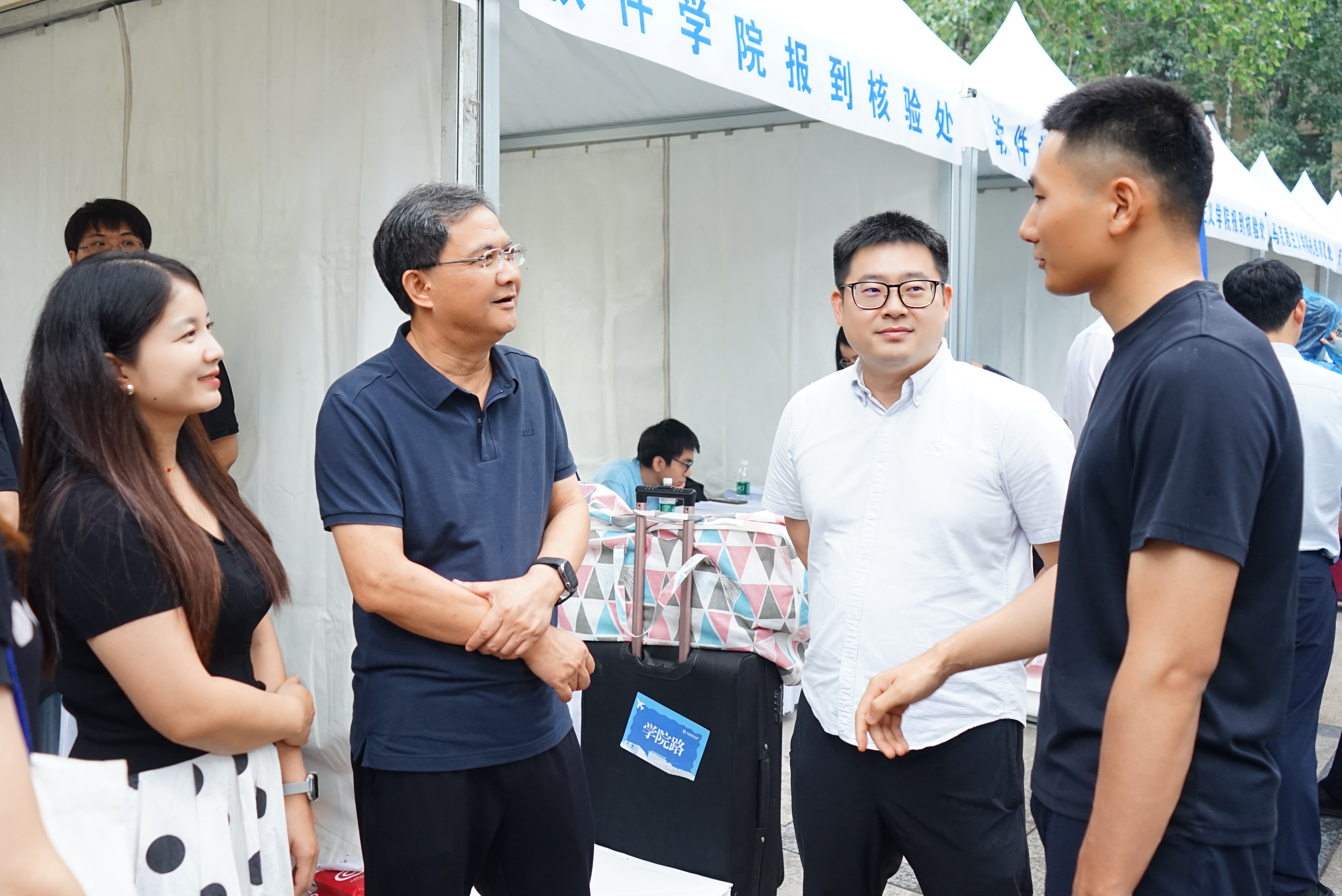 公司党委书记赵长禄、副董事长邓怡等校领导,英国上市官网365经理蔡劲松、党委书记王琪全、副经理陈文博、副经理涂晓芳、党委副书记方志等公司领导老师来到迎新现场,慰问参与迎新工作的师生,并与前来报到的研究生新生亲切交流,向他们表示热烈欢迎,鼓励他们勇做时代的弄潮儿,在自己的专业领域里笔耕不缀,勇于追梦,投身强国伟业。