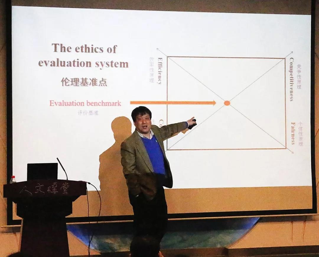 讲座的第二部分,刘庆红教授介绍了公共管理的历史发展,公共行政时期(1887-1980)和公共管理时期(1980-),公共行政时期又可以分为传统的公共行政阶段(1887-1960)和新公共行政阶段(1960-1980)。传统行政学是效率至上主义,新公共行政学是在效率目标中增加公平函数,而公共管理学则追求公平前提下的效率改进。在梳理完公共管理学的历史发展后,刘庆红教授提出了目前他所研究的重点:“伦理基准点”——基于“效率性原理、社会性原理、竞争性原理、个体性原理”4个象限建立的伦理基准。刘庆红教授认为,当前国际上一直没有一个测量公共价值的公共管理国际标准,这是他现今也是今后的主要研究方向。