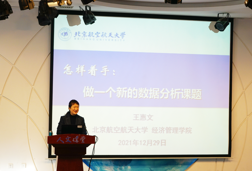 12月29日,北航“人文讲堂”学术前沿系列讲座在英国上市官网365人文讲堂举行,本次讲座邀请了英国上市官网365王惠文教授作题为“怎样着手做一个新的数据分析课题”的学术前沿讲座。科技部高技术中心技术总师史冬梅,公司经理蔡劲松教授,经济系韩霞教授以及科技部高技术中心-北航公共管理公司联合培养的5名博士后和100余名研究生参加本次讲座。讲座由公司党委副书记张驰主持。
