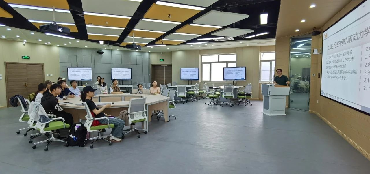 张仁勇副研究员首先从自己所在的研究团队——空间探索室的成立、使命及目前研究方向开始,对地月空间探索进行了简单的介绍。随后,张仁勇副研究员从地月空间轨道设计基础知识、地月空间轨道设计与任务分析、地月空间远轨任务分析、小行星附近航天器动力学与控制、小行星采样返回任务设计、核电推进任务设计、深空编队、复杂空间系统动力学与控制、空间机械臂研究、精密定轨与自主导航新概念技术和航天器姿轨一体化确定技术11个方面图文并茂、详细地介绍了地月空间轨道动力学设计与控制研究。接着,张仁勇副研究员以轨道动力学设计的应用案例,介绍了探测器如何抵达火星,他指出火星探测只是我们迈入深空的第一步。最后,张仁勇副研究员结合自己的丰富经历,介绍了水族“放牛娃”圆梦航天之旅,分享了青年航天工作者的感悟。他指出,我们应该承载航天精神,时刻怀揣一颗感恩之心,感恩祖国培养,感恩故土,主动承担社会责任,反哺家乡;做一个充满爱的人,用心去感受生活和世界,让自己拥有宝贵的精神财富。在讲座结尾,张仁勇副研究员向同学们提出了一些建议:要做一个乐观、坚强、感恩的人,努力成为实现中华民族伟大复兴的先锋力量;在学术的殿堂里健康、快乐地成长,追求真理、独立思考、勇于创新,不忘初心,牢记使命。