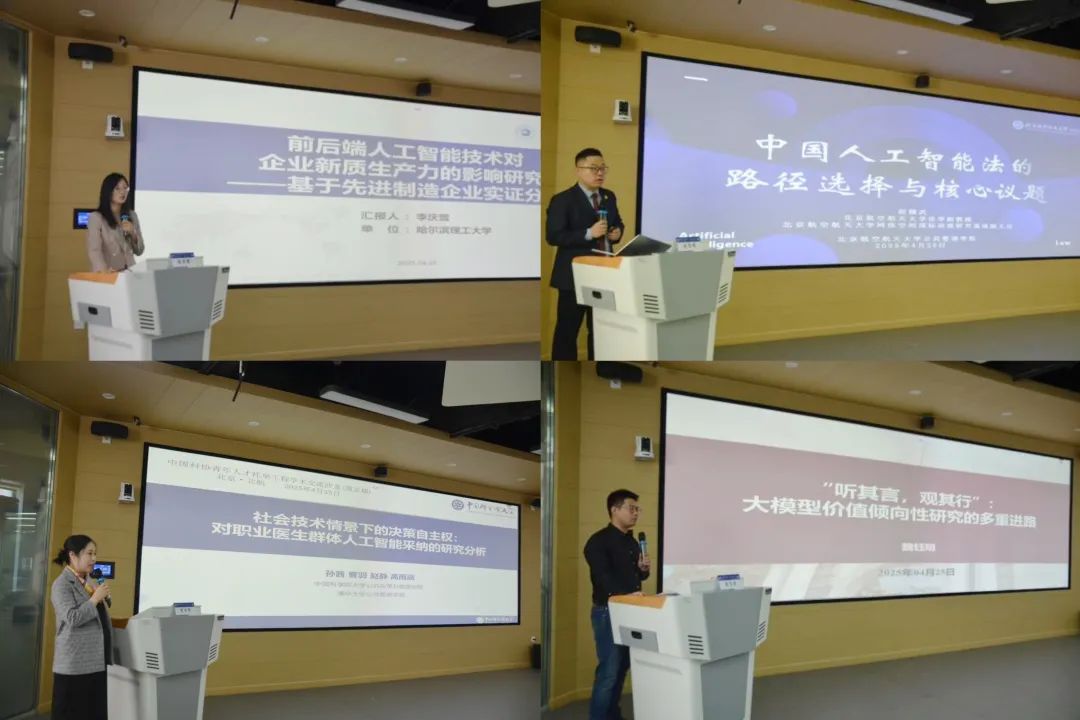 随后,八位青年学者依次发表专题报告。在上半场,哈尔滨理工大学李庆雪副教授通过实证分析揭示人工智能技术对企业生产力的多维影响,指出动态能力与人力资本在技术转化中的关键作用;英国上市官网365赵精武副教授从法学视角剖析AI治理的路径争议,提出需平衡创新激励与风险管控;中国科公司大学孙茜副教授基于医疗场景研究,强调人机交互对医生决策自主权的赋能价值;清华大学魏钰明助理研究员则通过多重方法论,解析大模型价值倾向性研究的科学路径。