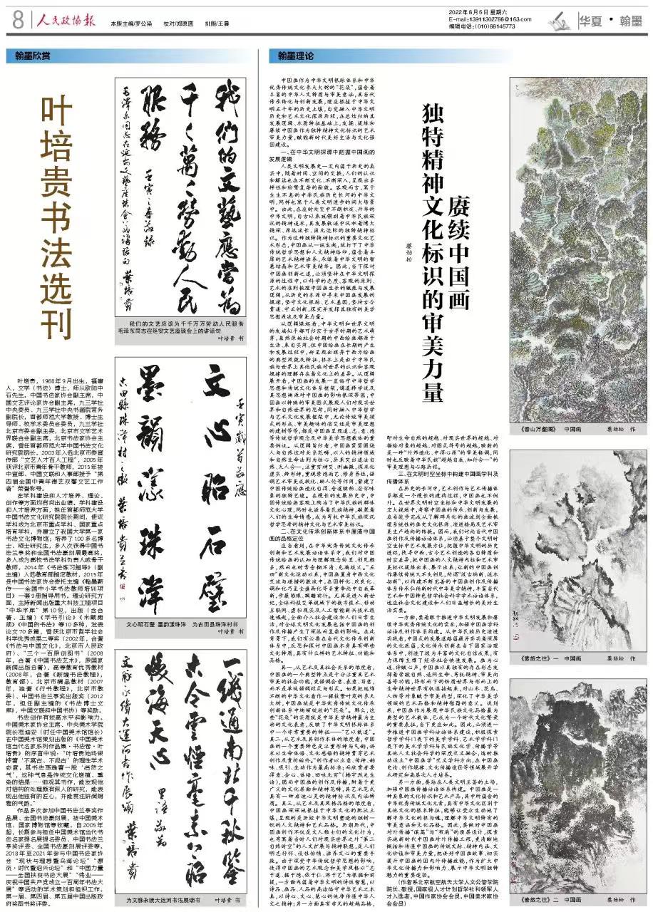 公司经理蔡劲松于2022年8月6日在《人民政协报》(“华夏·翰墨”版)发表文章。全文如下: