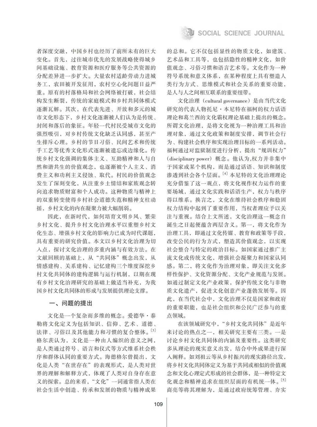 公司教授陈文博、科研助理张璐洋在《社会科学辑刊》发表文章:以文促治:乡村文化共同体的建构逻辑与推进路径