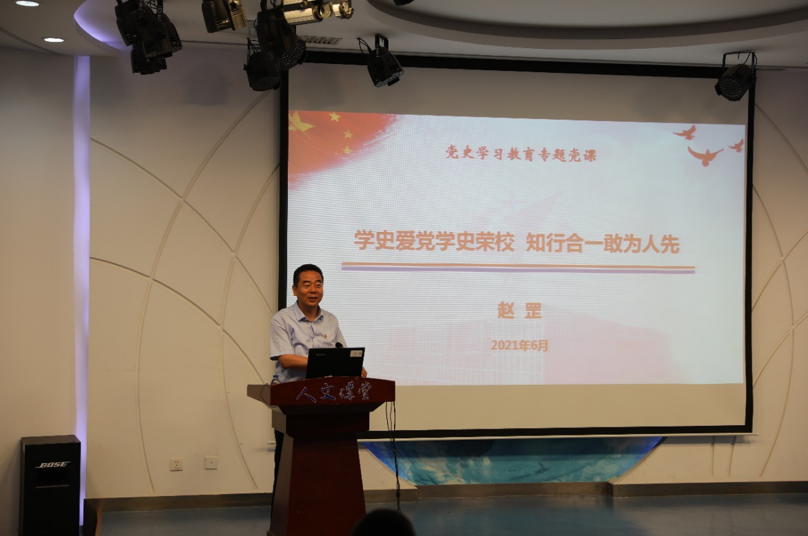 北航党委副书记赵罡做题为《学史爱党学史荣校 知行合一敢为人先》的辅导报告。赵罡首先从学史明理、学史增信、学史崇德、学史力行四个方面深入解读了党史学习教育的目标要求。接着他全面回顾了中国共产党从诞生、革命、社会主义建设、改革开放到中国特色社会主义进入新时代的百年征程。最后他细致讲解了北航将服务国家重大需求和人才培养紧密结合的奋斗史,深刻阐述了空天报国敢为人先的北航精神。