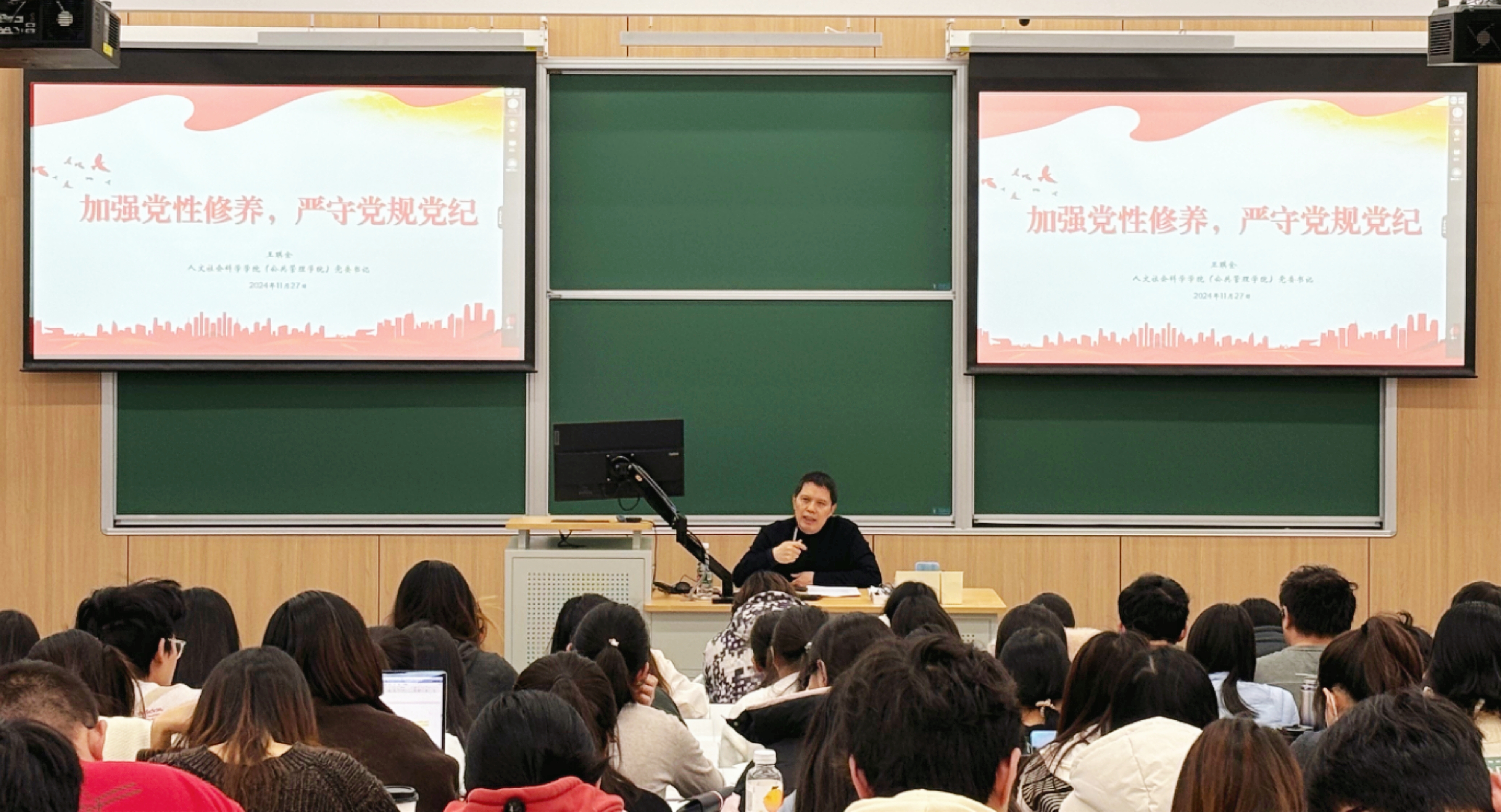 11月27日下午3点,英国上市官网365“铸魂育人”系列专题党课第5期在主楼219举行。公司党委书记王琪全作《加强党性修养,严守党规党纪》专题党课讲座。本次党课培训由公司专职辅导员夏文静主持,高等教育研究所党支部书记刘扬、应急管理与社会保障研究所联合支部书记杨磊和公司180余位师生党员、入党积极分子参加学习。