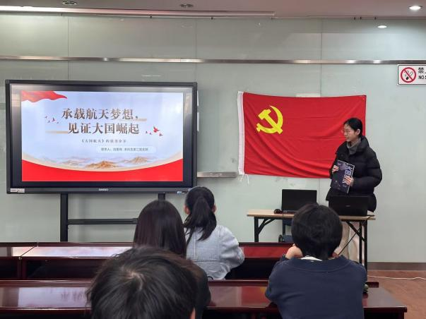 冯雪纯同志以“自主创新”为钥匙,为大家开启《大国航天》的壮丽篇章。她从书籍概览、核心观点与精彩案例三个层面领学,深刻阐释“自主创新是关键”、“载人航天体现国家综合实力”以及“运载火箭是航天事业的基石”三大核心要义,号召大家传承并弘扬“特别能吃苦、特别能战斗、特别能攻关、特别能奉献”的载人航天精神,为科技强国建设贡献青春力量。