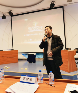 蔡劲松经理作总结发言,他指出:第二届MPA案例大赛的成功举办可喜可贺,此次大赛的进展顺利,无论是赛事组织还是参赛案例的写作水平、同学们的参赛积极性都有了较大地提升。入围决赛的同学在现场生动展示了他们别样的风采,是推进MPA教育、推进案例教育不可缺少的环节、非常重要,要进一步加强赛事组织与教学管理工作,推动MPA教学工作继续迈上新台阶。