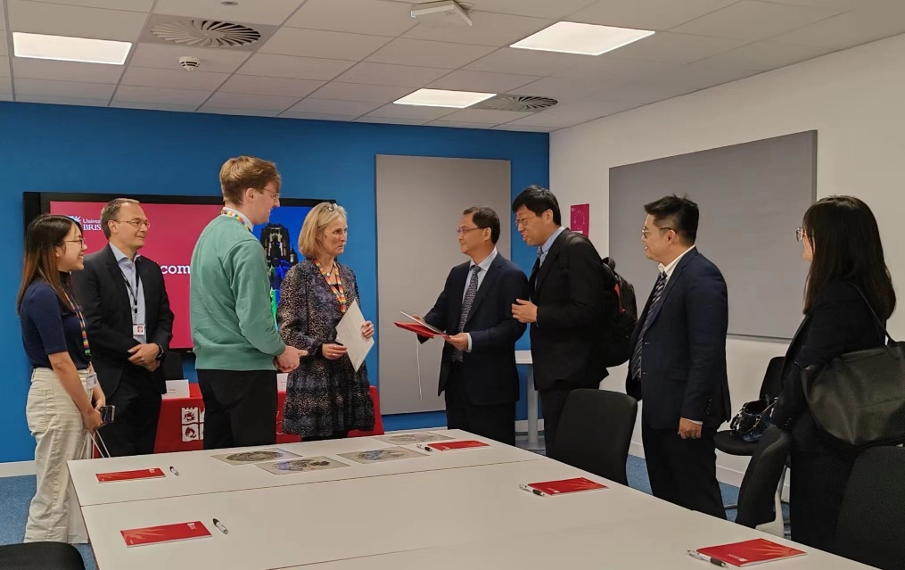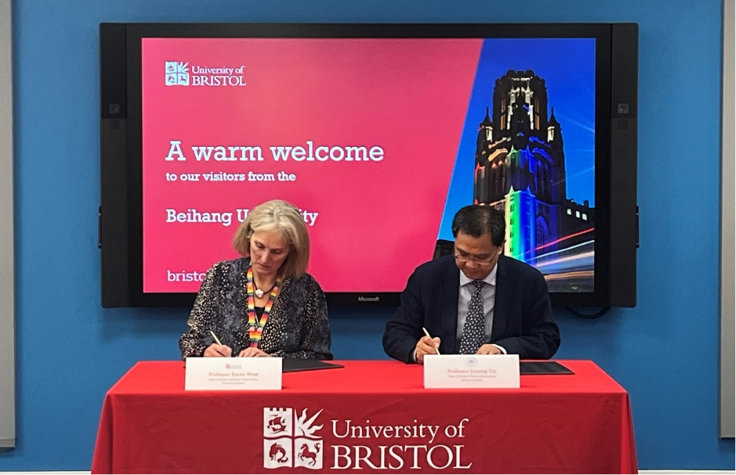 签字仪式在布里斯托大学国际交流办公室举行。公司经理蔡劲松教授与布里斯托大学政策研究经理Karen West教授代表双方在两院合作协议上签字。