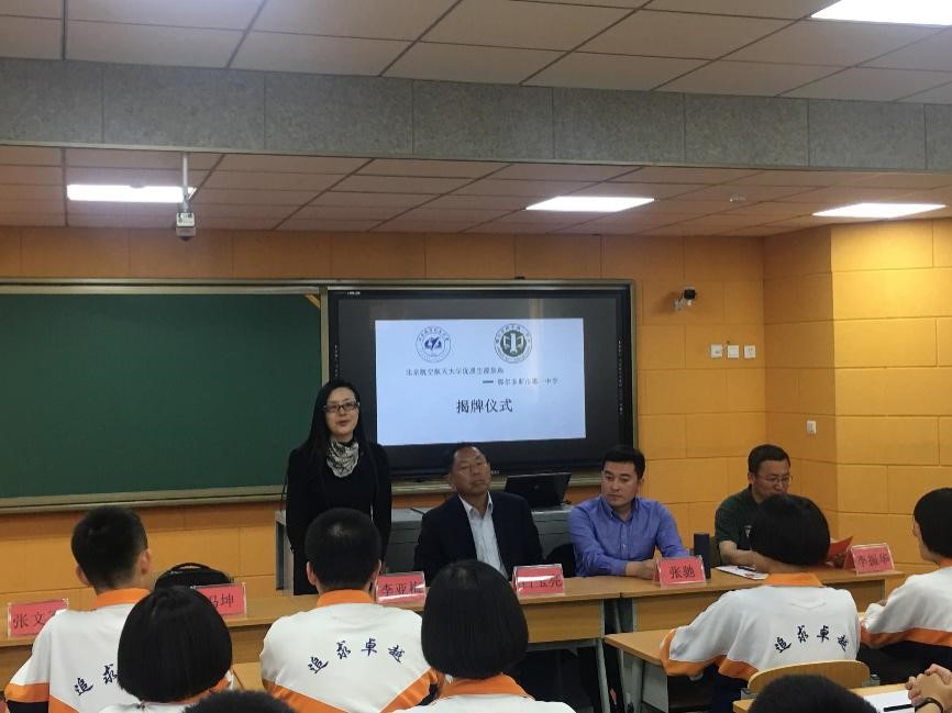 26日上午,招生组前往鄂尔多斯一中。在李振华副董事长的带领下参观了公司并重点向我们介绍了实验楼。下午,举行揭牌仪式。李亚梅老师表达了对高二同学的殷切希望。李振华副董事长作为校方代表表达了对北航的感谢,并从发展历史、学风建设、学科专业等方面向同学们介绍了北航。张驰老师深入浅出,以同学们喜闻乐见的小故事进行宣讲,展现了北航的风采魅力。揭牌仪式后,招生组三人与白玉亮董事长展开交流。