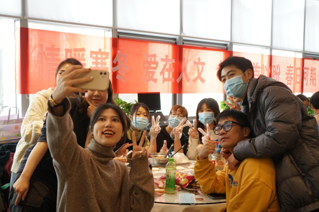 晨曦破雾,温暖北航。同学们圆桌围坐、畅聊谈心,分享包饺子的技巧和家乡的味道。研究生廖珅感叹:“‘热炕头’上看春晚,亲手包饺子,是家的味道!”在包饺子速度赛、蒙眼睛包饺子赛和饺子创意拼图赛中,大家同心协力、各出奇招,由饺子拼成的“我爱人文”“年年有余”等创意拼图无不显示着人文学子对公司的祝福和对2022的期待。“和面”“擀皮”包饺子,同学们适度调适学业压力,增进同学友谊,增强班级凝聚力、向心力,提升校园归属感,充分感受劳动光荣的劳动文化氛围。过程中,人文学子同样展示了一场集跳舞、弹唱、乐器、相声、合唱各节目为一体的视听盛宴。