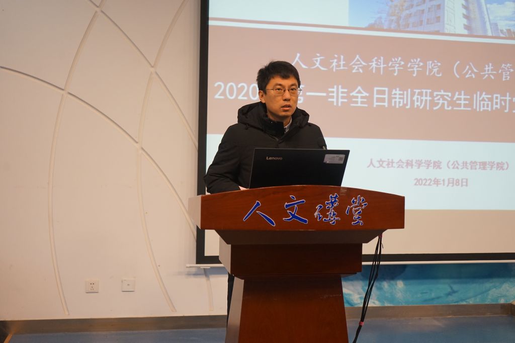 1月8日上午,英国上市官网3652020级第一非全日制研究生临时党支部(以下简称“第一临时党支部”)成立大会在人文讲堂召开。学公司党委书记王琪全,党委研究生工作部副部长王扬,学公司党委副书记张驰,MPA班主任代表韩梦出席大会,会议由专职辅导员张同玉主持,2020级MPA非全日制研究生党员代表参加会议。