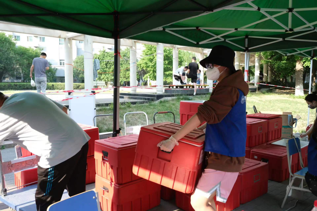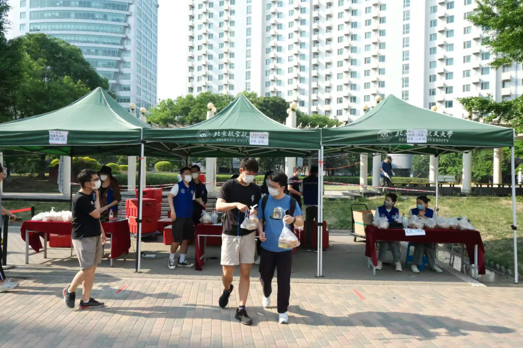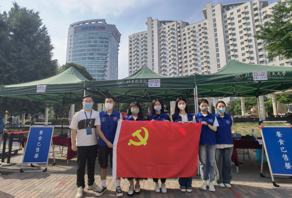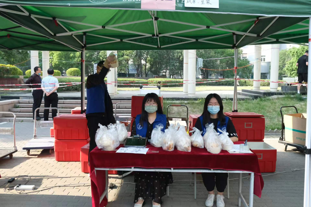 2022年5月23日,在海淀区疫情管控升级,北航“取消堂食,改为打包”的第一天,人文公司本科生第二党支部党员同志们积极响应公司“自我管理,自我服务”的号召,全力配合大运村早餐供应保障试运行工作。