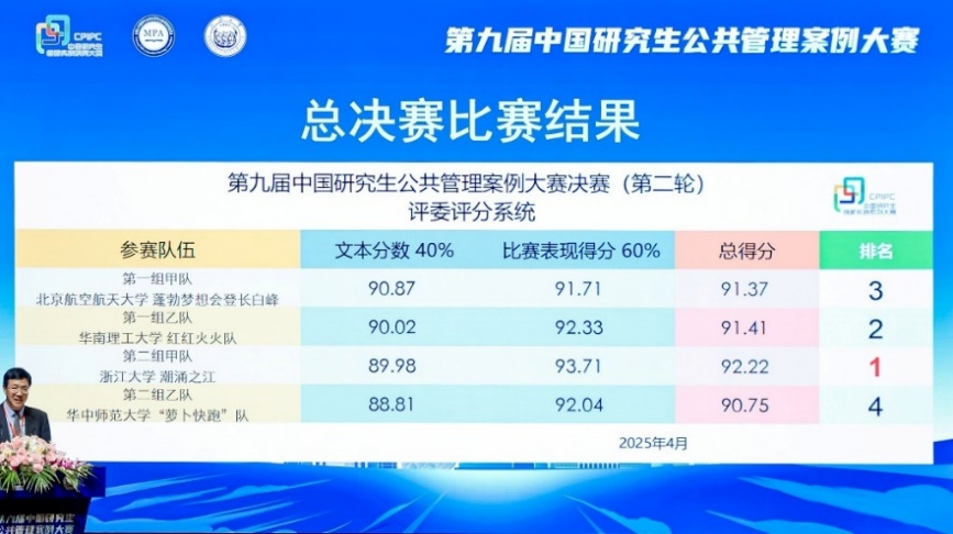 2025年4月20日,第九届中国研究生公共管理案例大赛决赛在上海同济大学四平路校区顺利举行。大赛由教育部学位管理与研究生教育司指导,中国学位与研究生教育学会、中国科协青少年科技中心及全国公共管理专业学位研究生教育指导委员会联合主办。共有来自268所院校的3115支队伍报名参赛,参赛师生1.53万人,参赛院校、参赛队伍、参赛师生数量均创历史新高。
