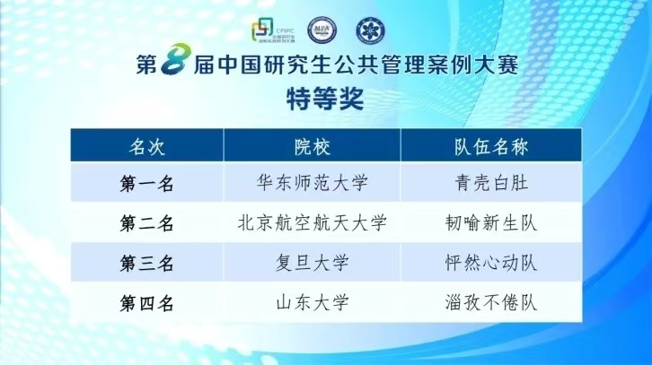 据悉,中国研究生公共管理案例大赛属于“中国研究生创新实践系列大赛”的主题赛事之一,也是公共管理学科类唯一上榜的权威性赛事。旨在引导广大研究生尤其是MPA研究生关注我国公共管理实际问题,通过调查研究、案例采编及分析辩论等比赛过程,在MPA教育中进一步推广案例教学,使MPA教育与公共管理实践、与国家发展大局结合更加紧密。自开办以来,该项赛事认可度和影响力与日俱增,已成为我国公共管理高等教育领域的品牌赛事。
