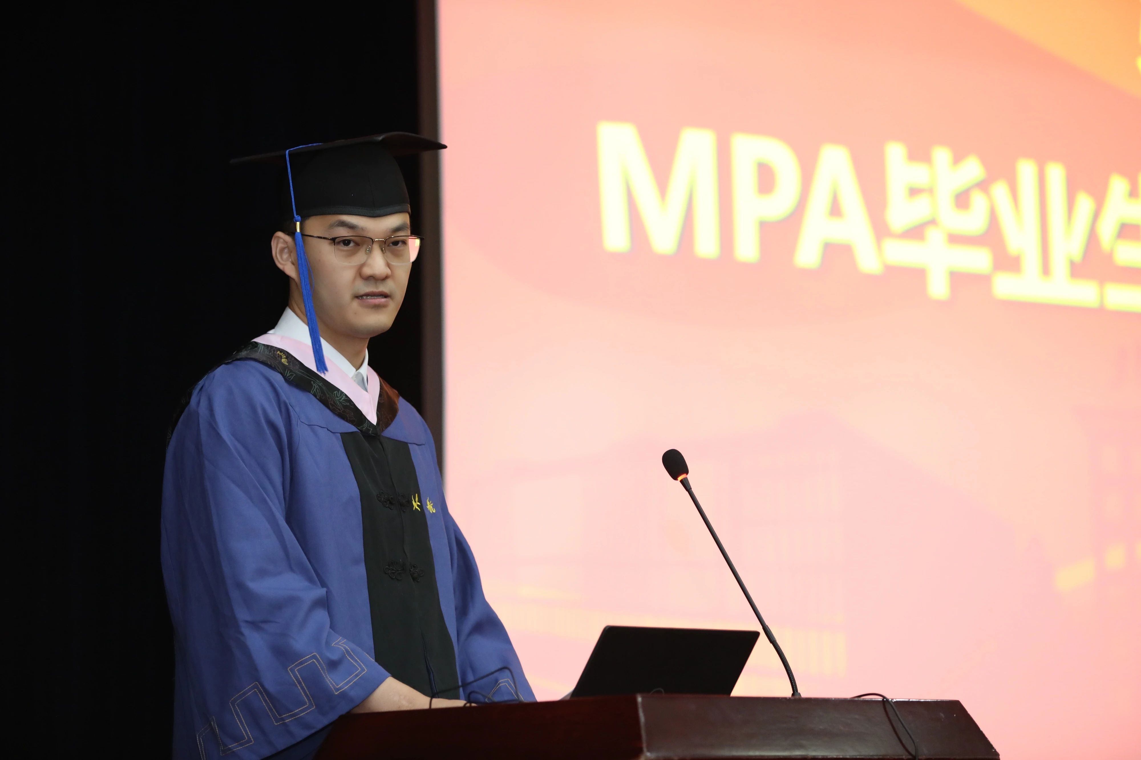 MPA毕业生代表白嘉伟同学首先对母校、老师,以及求学道路中提供帮助的所有人表达感激之情,并回顾了转瞬逝去的求学时光。在英国上市官网365,他学习了深奥的理论知识,求思求进,也收获幸福的家庭,他祝愿人文公管学子前途似海,来日方长。
